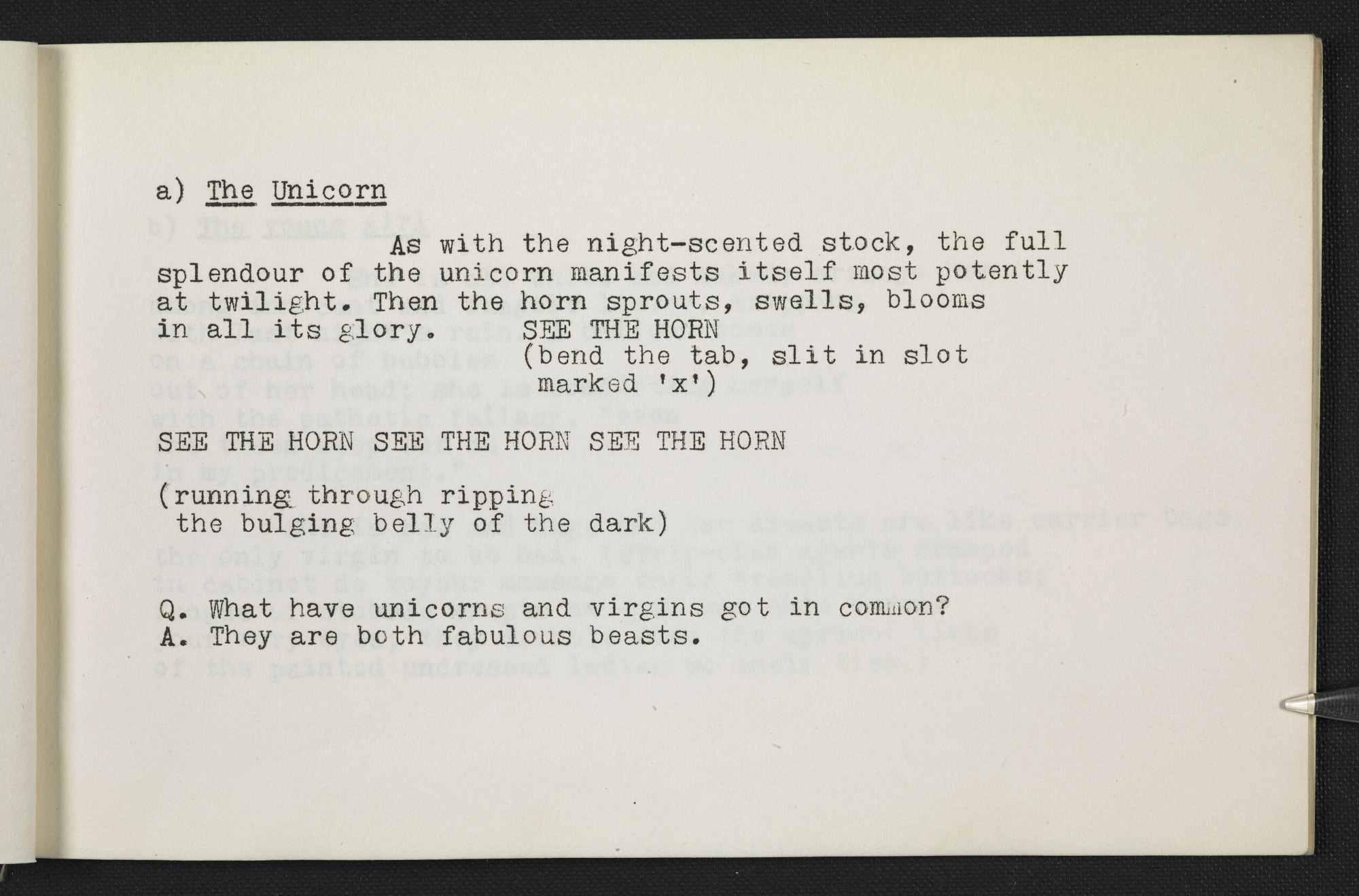 Experimental poem 'Unicorn', first printed in 1963 in Vision
